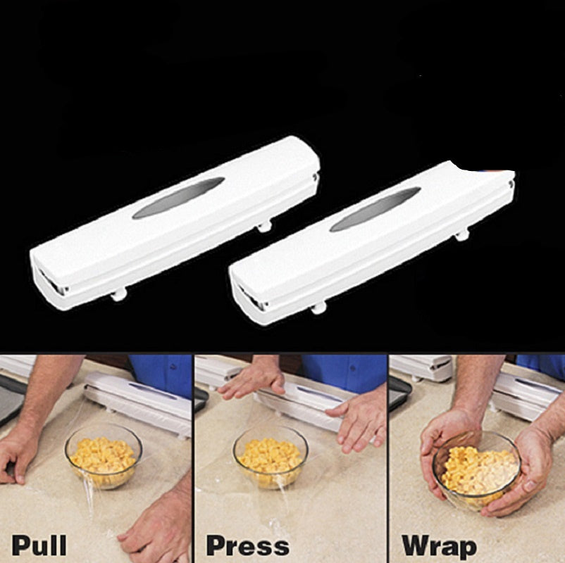 Plastic Wrap Cutter - Pull, Press and Cut - Cling Wrap Dispenser Foil - Wax Paper Kitchen Accessories