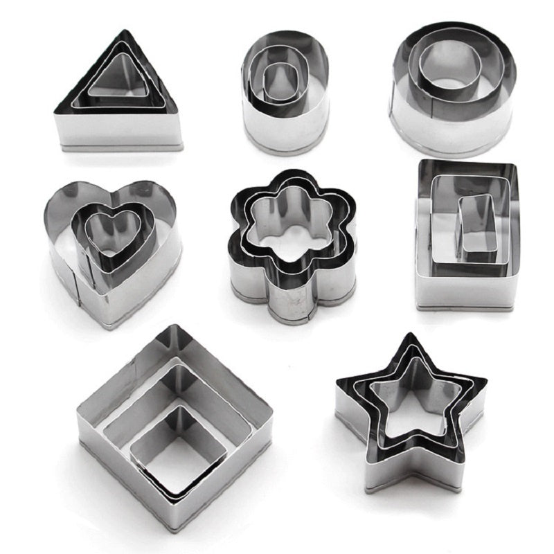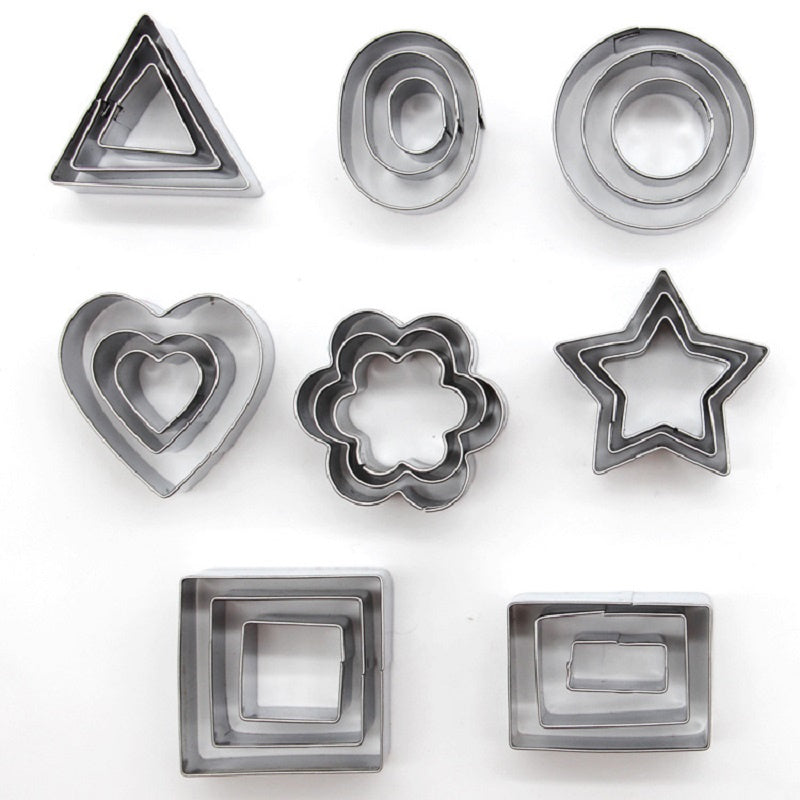 24 Pieces Biscuit Cutters Stainless Steel Cookie Cutters Fondant Geometric Shape Cutters for Baking