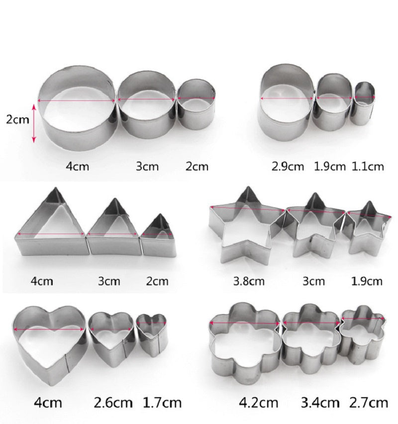 Function: Great for cutting dough,fudge,cookies,bread,sandwiches,cheese,pancakes,fruits and other foods into interesting shapes.