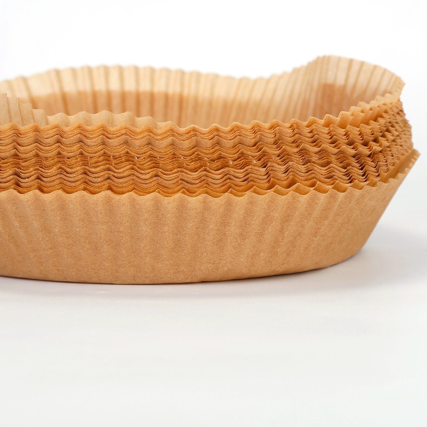 **Wide Applications*:The heat is generated by the air circulation in the pan walls,and the air circulation will not be interfered with by using disposable paper liners. When baking,the grease will flow onto the paper liner,giving you healthier food. Suitable for air fryers,microwave ovens and ovens,and can be used for baking,roasting,frying or holding food,suitable for home baking,camping,barbecue,summer parties,etc.,lightweight and practical.