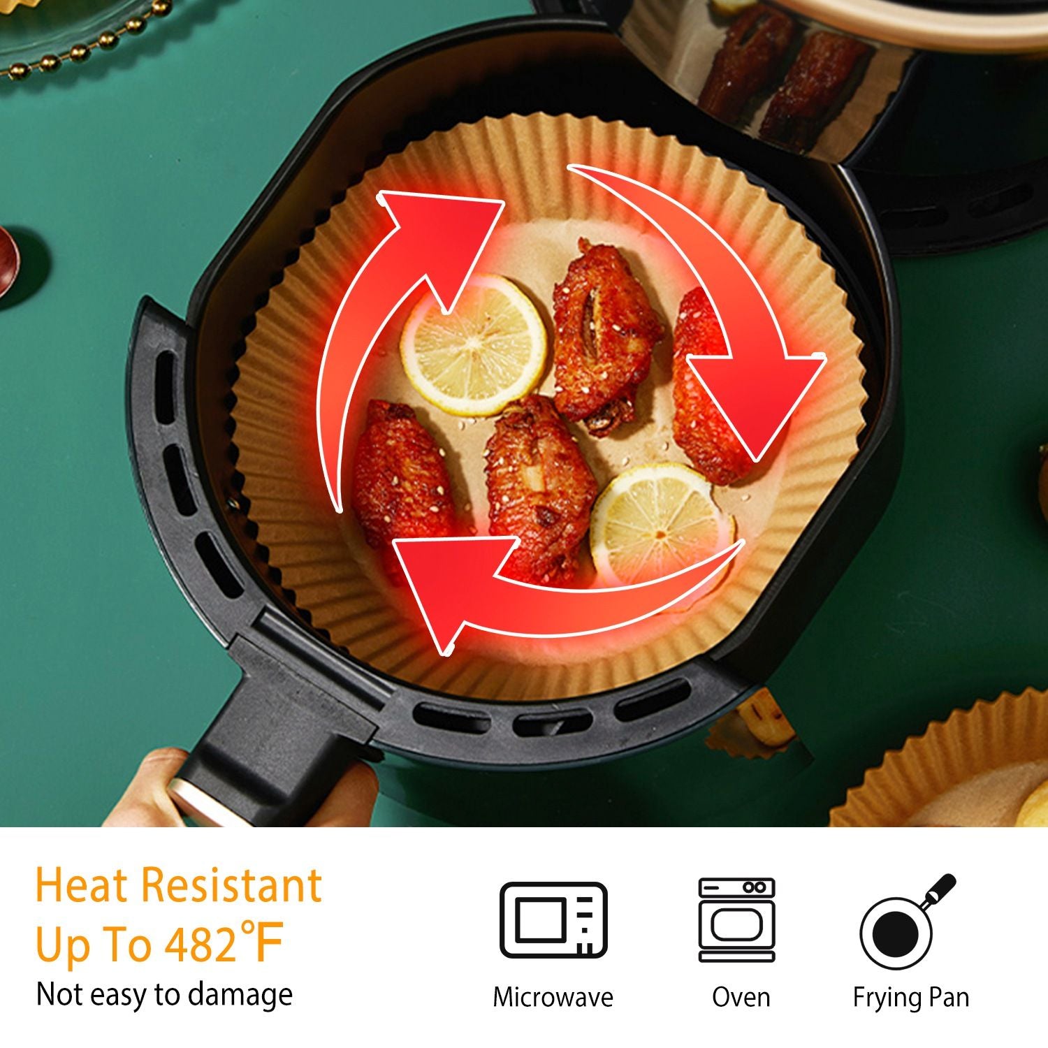 **Food Grade Parchment Liner*:Using food grade silicone oil,it is waterproof,oil-proof,non-stick,disposable air fryer paper can withstand temperatures up to 482℉.
