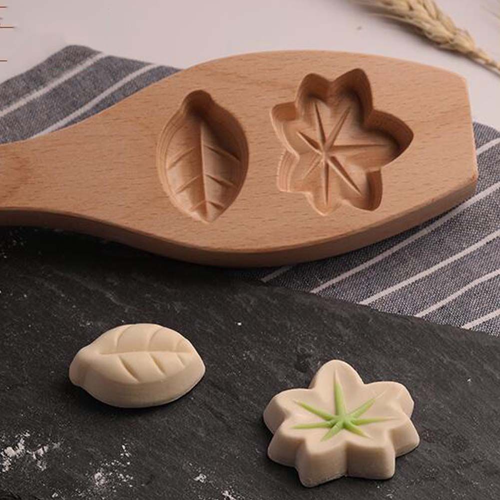 Wooden Moon Cake Mold Wagashi Snow Skin Mooncake Mold DIY Rice Cake Baking Mold 3D Maple Leaves 15-20g