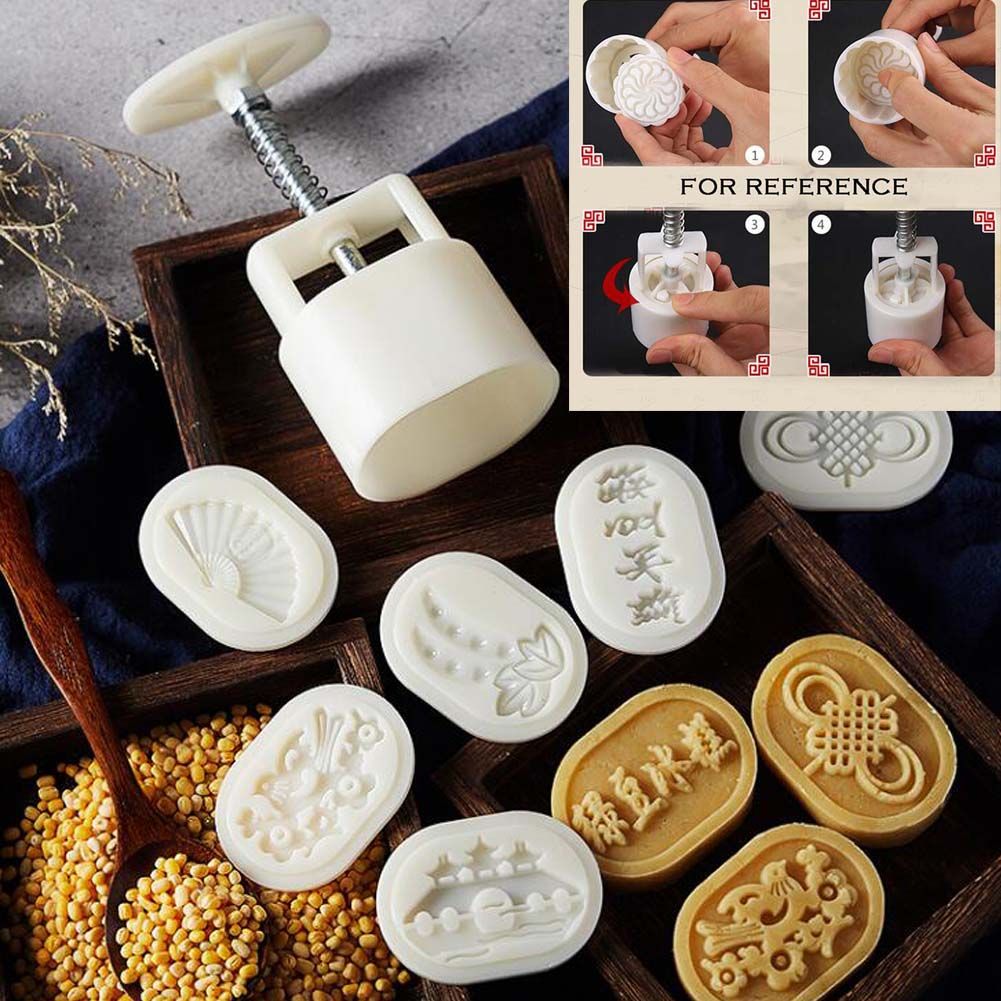 Creative and simple design, easy to handmade baked goods. Hand press handle with a spring make it smooth and simple to get the perfect shape. To make beautiful desserts, comfort food, green bean cake and Lunar Festival moon cakes with these molds. Each stamp can be functioned as a cookie cutter, which is also perfect for making pumpkin cakes, cookies and different kinds of desserts. Also great for making bath bombs, bath fizzies, soaps. Suits for Kitchen, baking room, hotel and all kinds of party, especially for those who love traditional moon cakes. Easy care: After using, please dry it up and place it in a cool position. Don't use it in ovens or put in boiled water. Good molds for home baking.