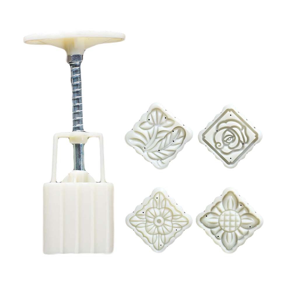 Square Shape Moon Cake Mold 4 Stamps Flower Cake Mold Pie Mold 50G