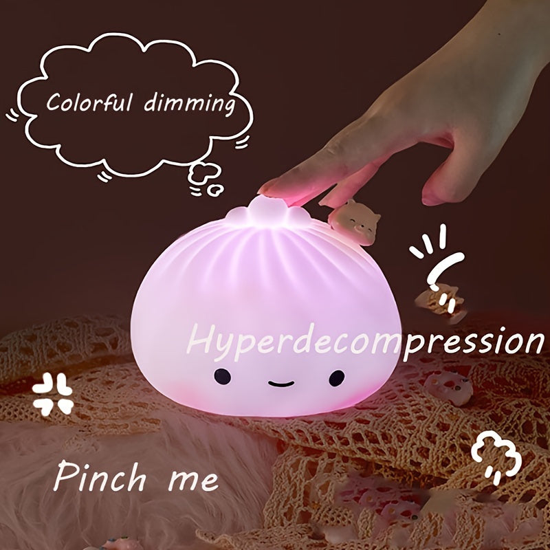 1pc Cute Dumpling Night Light; Silicone Cute Bun Lamp With Touch Control; Kawaii Nursery Light For Room Bedroom Home Decor; Valentine's Day Birthday Gift